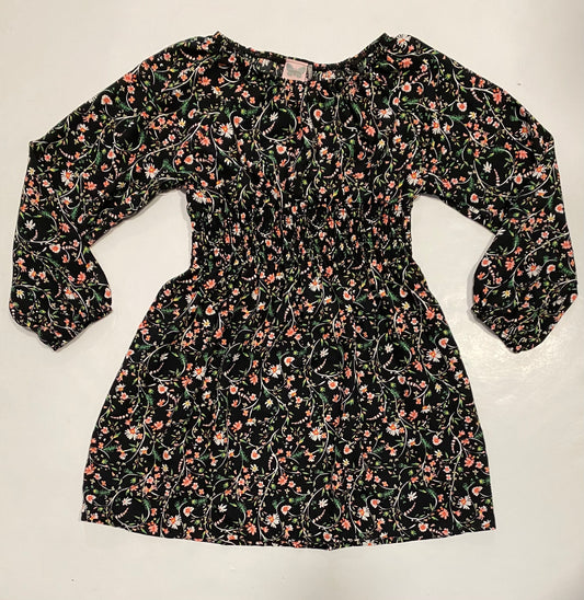 Black Floral Print Smocked Waist Dress