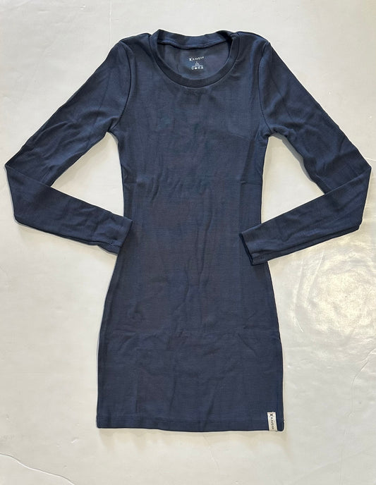 Blue Cotton Ribbed L/S Dress