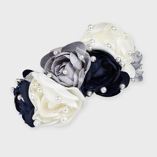 Navy Flowers and pearls headband