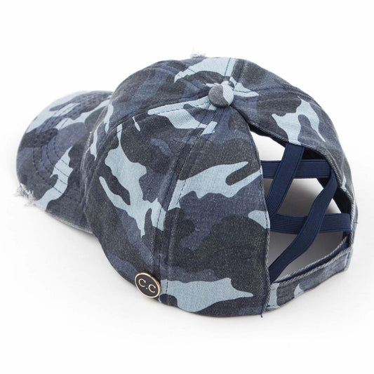Blue Camo High Ponytail Cap