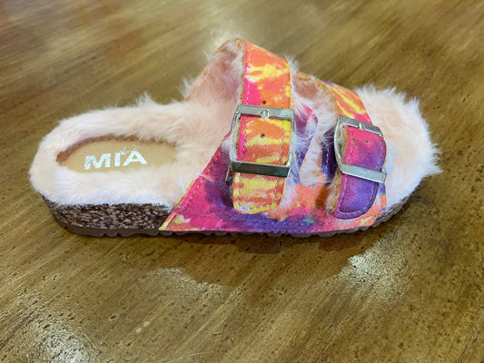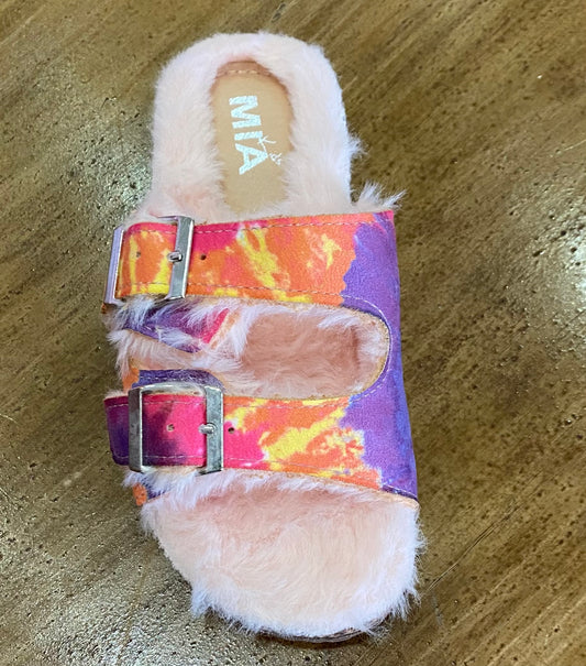 Tie Dye Faux Fur Dual Buckle Slide