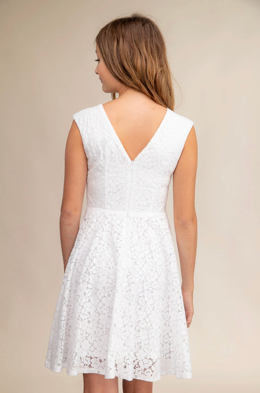White Lace Cap Sleeve Dress