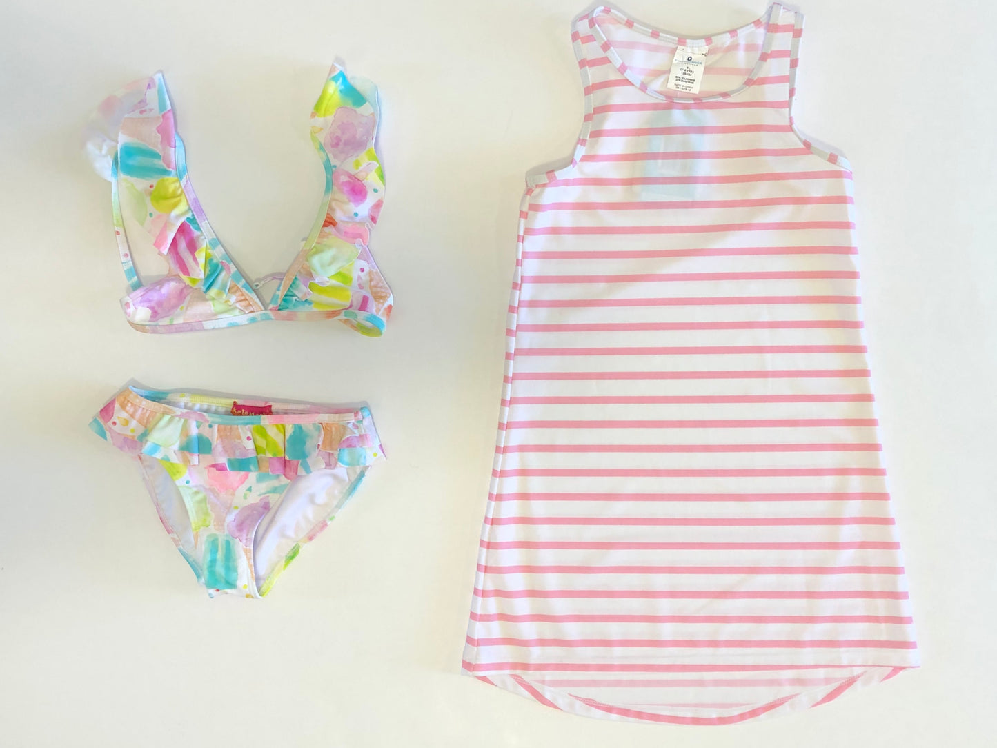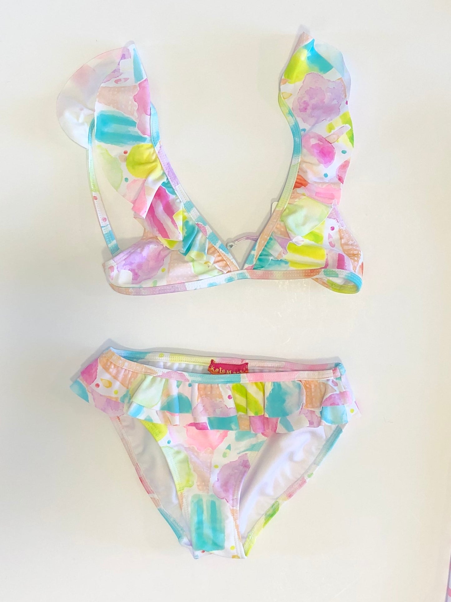 This adorable ruffle 2pc ice cream bathing suit has perfect colors that screams summer!