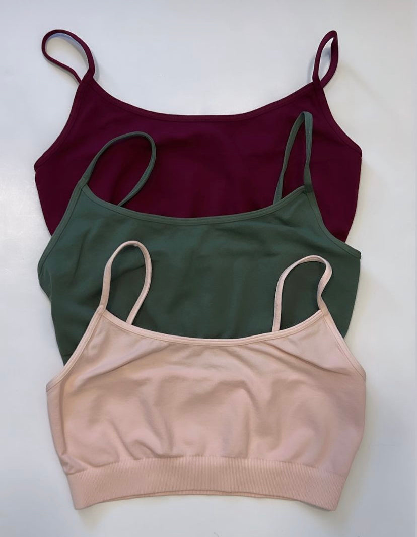 Bra Camisole is a great layering piece under any cami or t-shirt. It is also great for practice! 92% nylon/8% spandex. One Size 7-14
