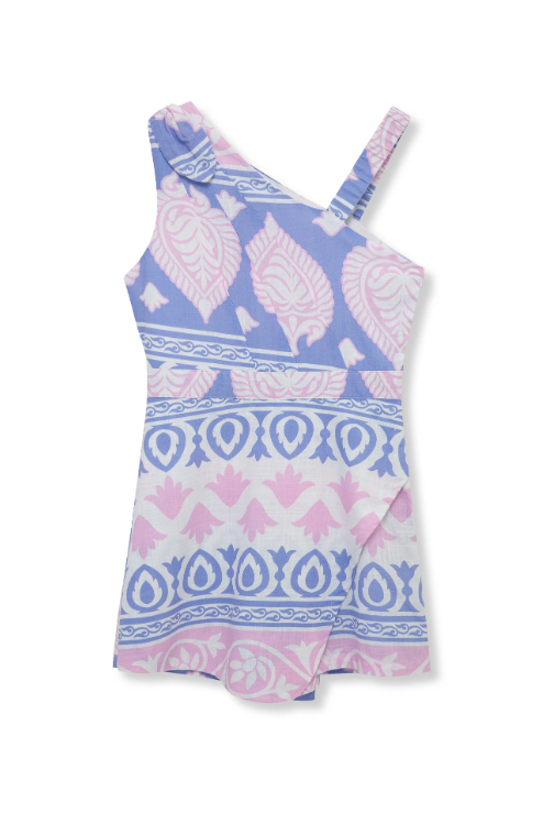 Let her stand out in style with our girls asymmetrical tie romper, a trendy and unique piece perfect for any occasion. Featuring a squarel neckline and button front, this romper is designed for the fashion-forward girl who loves to express her personality.