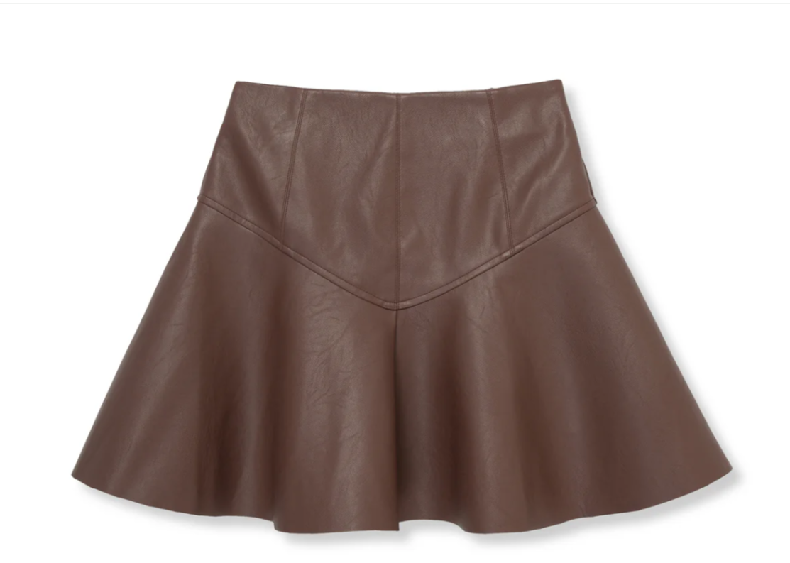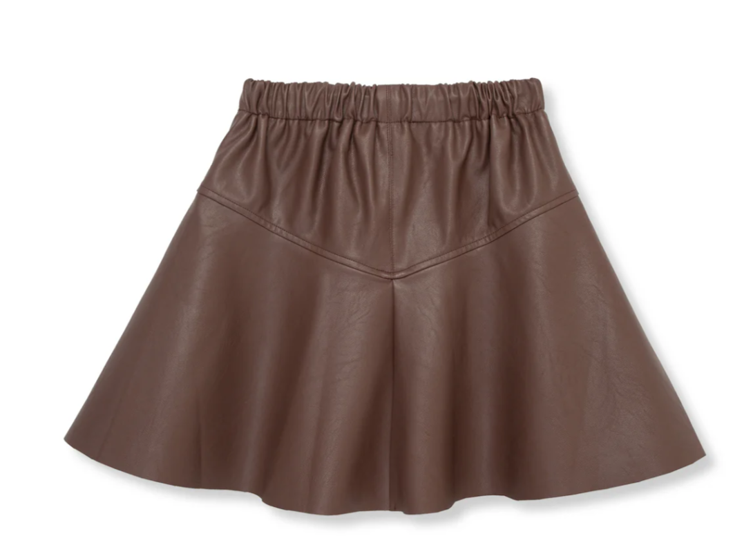 Minis will love this vegan leather skirt, which they easily dress up or dress down. An easy pull on.