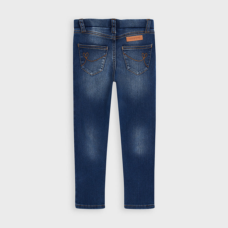 Super skinny pants for girl aged 4 to 9 years. Elasticated waistband with zip and button to fasten. Comfortable denim fabric, perfect for everyday outfits. Functional pockets on the front and back of the item. Item included in our casual line for fun and comfortable daily looks.