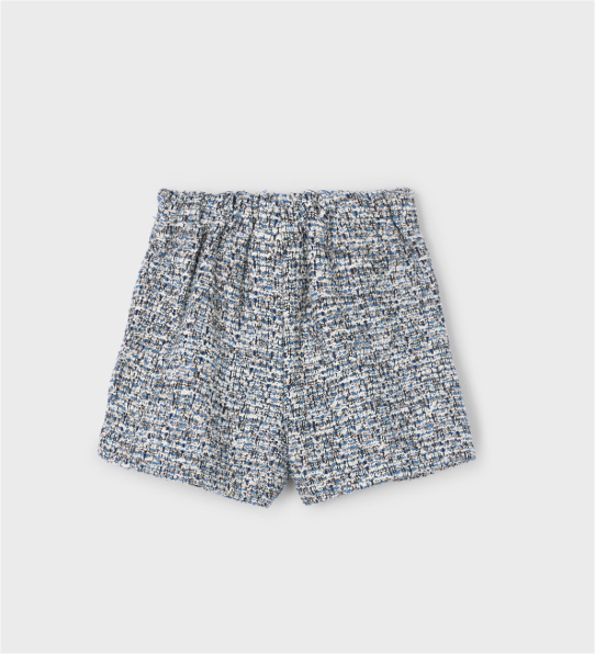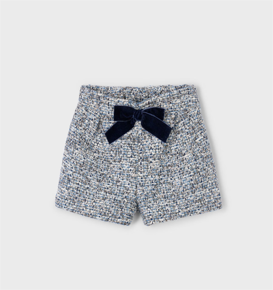 Shorts for girls. Adjustable elastic waistband with buttons inside the waistband for a better fit. Pleated design. Decorative elements: Bow.