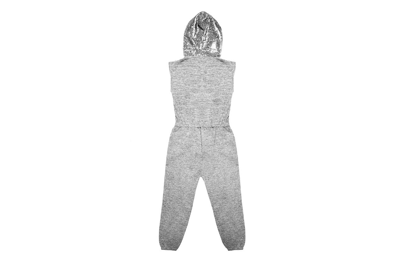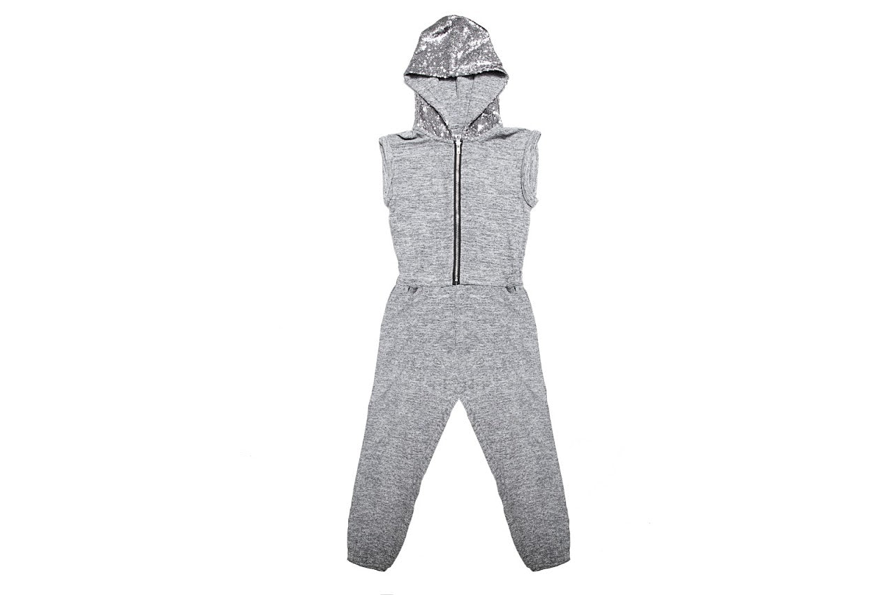 This onesie is the super soft zip up front with sliver sequins on the hoodie!