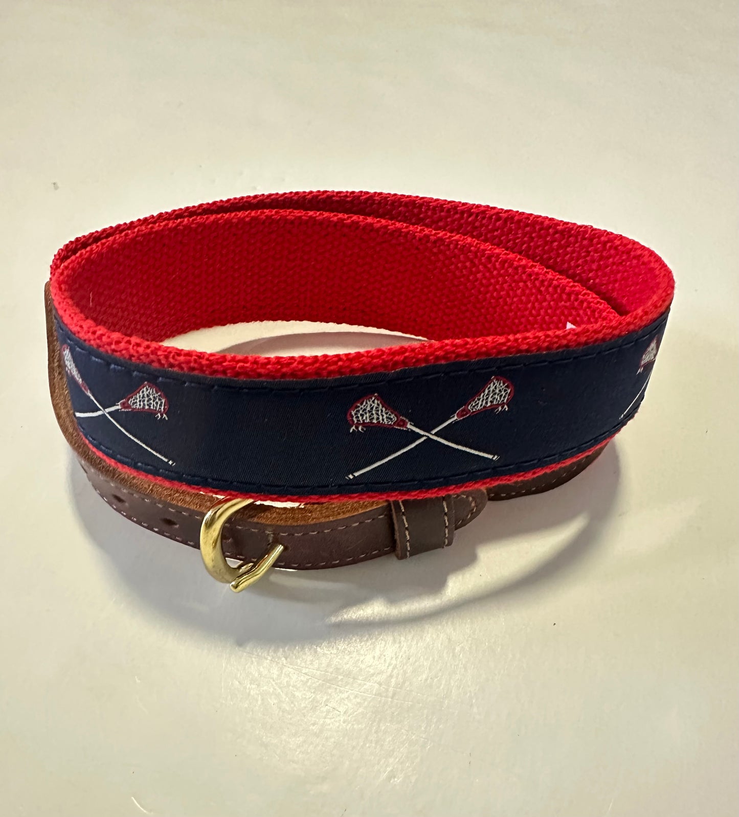 Love this navy ribbon with lacrosse sticks on a red belt!