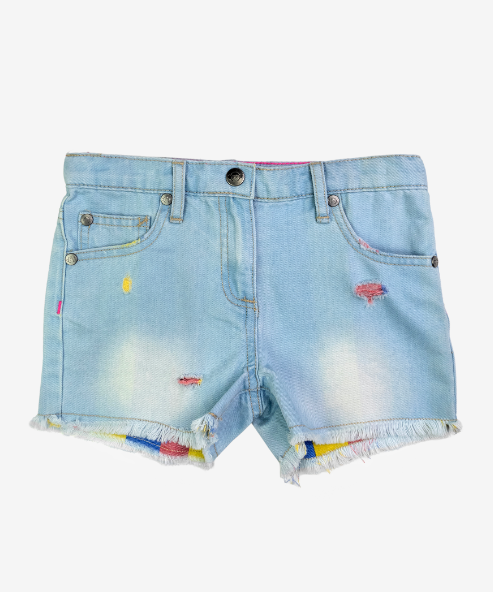 Made from a stretchy denim fabric, these cotton-denim jean shorts will be your kids favorite new piece. Featuring a raw hem and stitched sunrise on the back pockets.