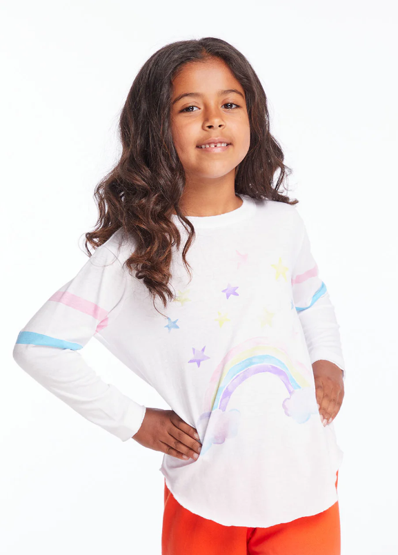 The soft hues of the watercolor rainbow are an invitation to her inner artist.