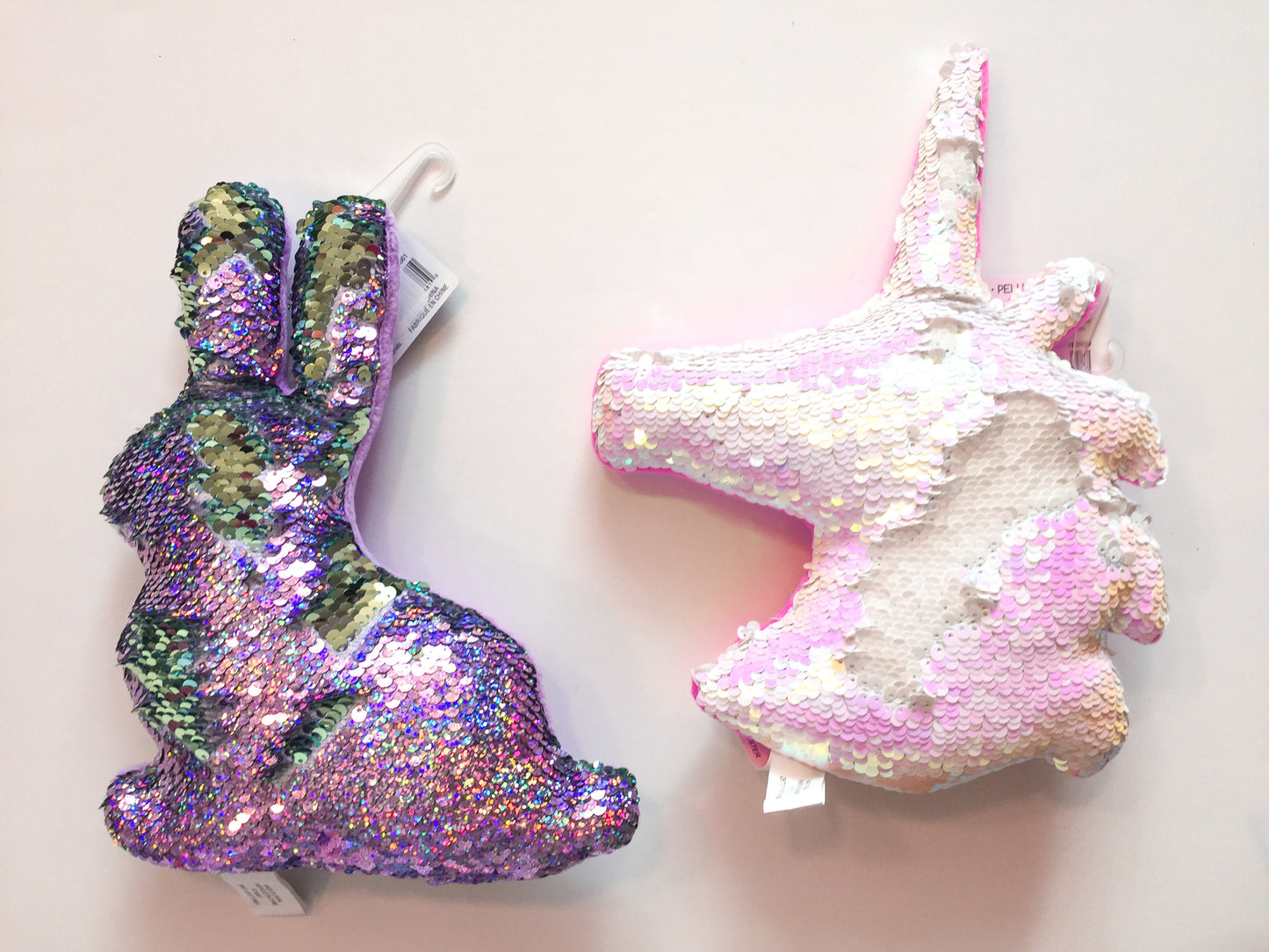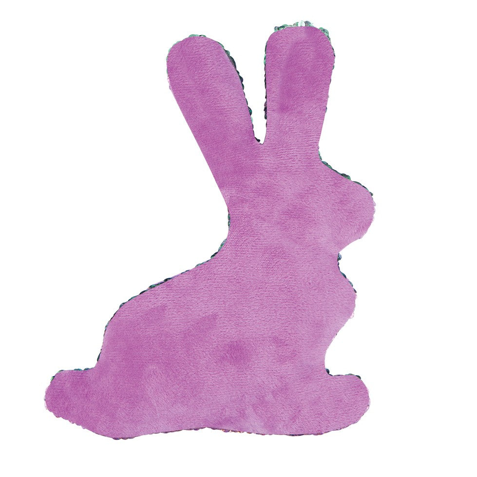 Upgrade your room with the cutest plush ever - a Magic Sequin Plush Bunny. This adorable bunny is covered in sequins that change from holographic purple to seafoam green with a swipe of your hand. This "fidget" plush will add a dash of glam any time of the year. The back is covered in a soft fuzzy plush making it the perfect accent for your bed, or just about anywhere.