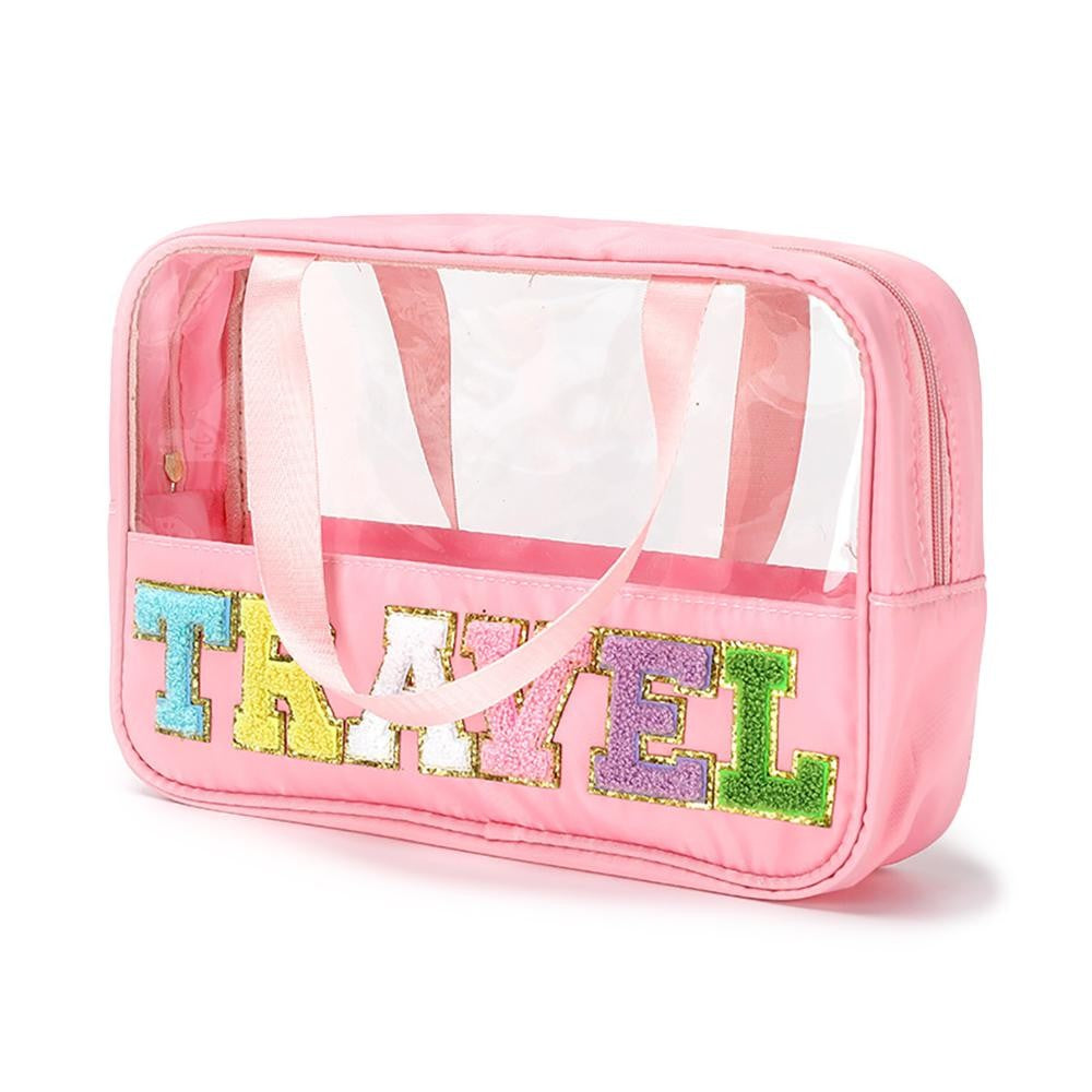 Chenille Letter Patch Transparent Makeup Bag With Straps