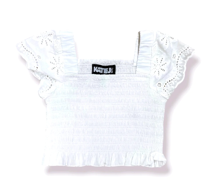 Smocked Scalloped Edge Lace Sleeves Pairs Perfectly with Matching Faye White Skirt